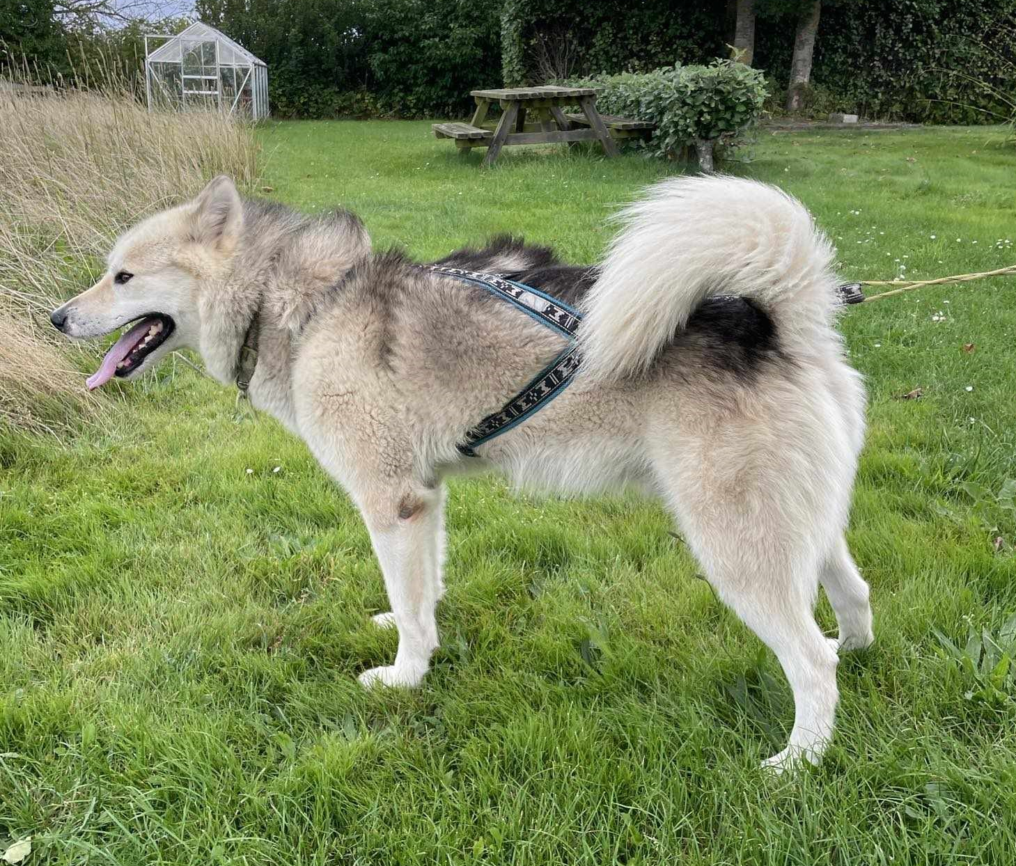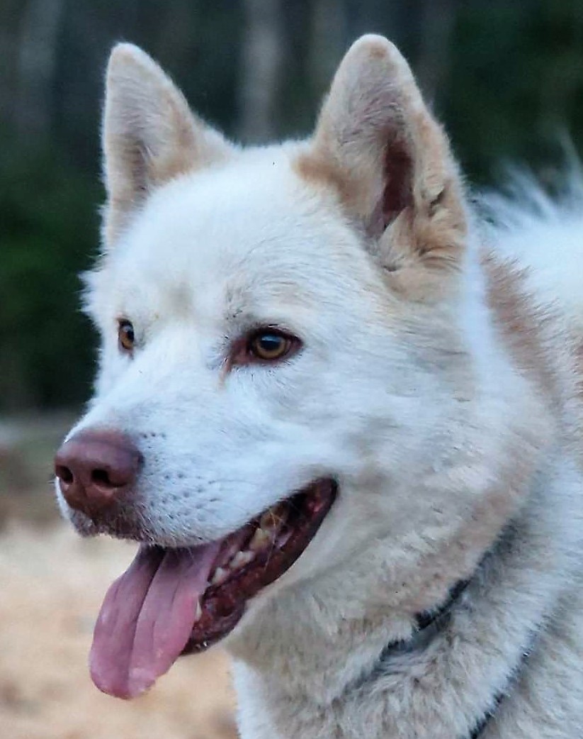 Bertram er 7 år gammel og kommer fra Aasiaat på Grønland. Her bodde han fram til han var 5 år, hvor han da flyttet til Danmark med sin eier. I Grønland ble han brukt som sledehund og kjørte viftespann. Jeg har selv vært i Danmark og besøk han, å fikk da se en sterk, ivrig og trekkglad hannhund.